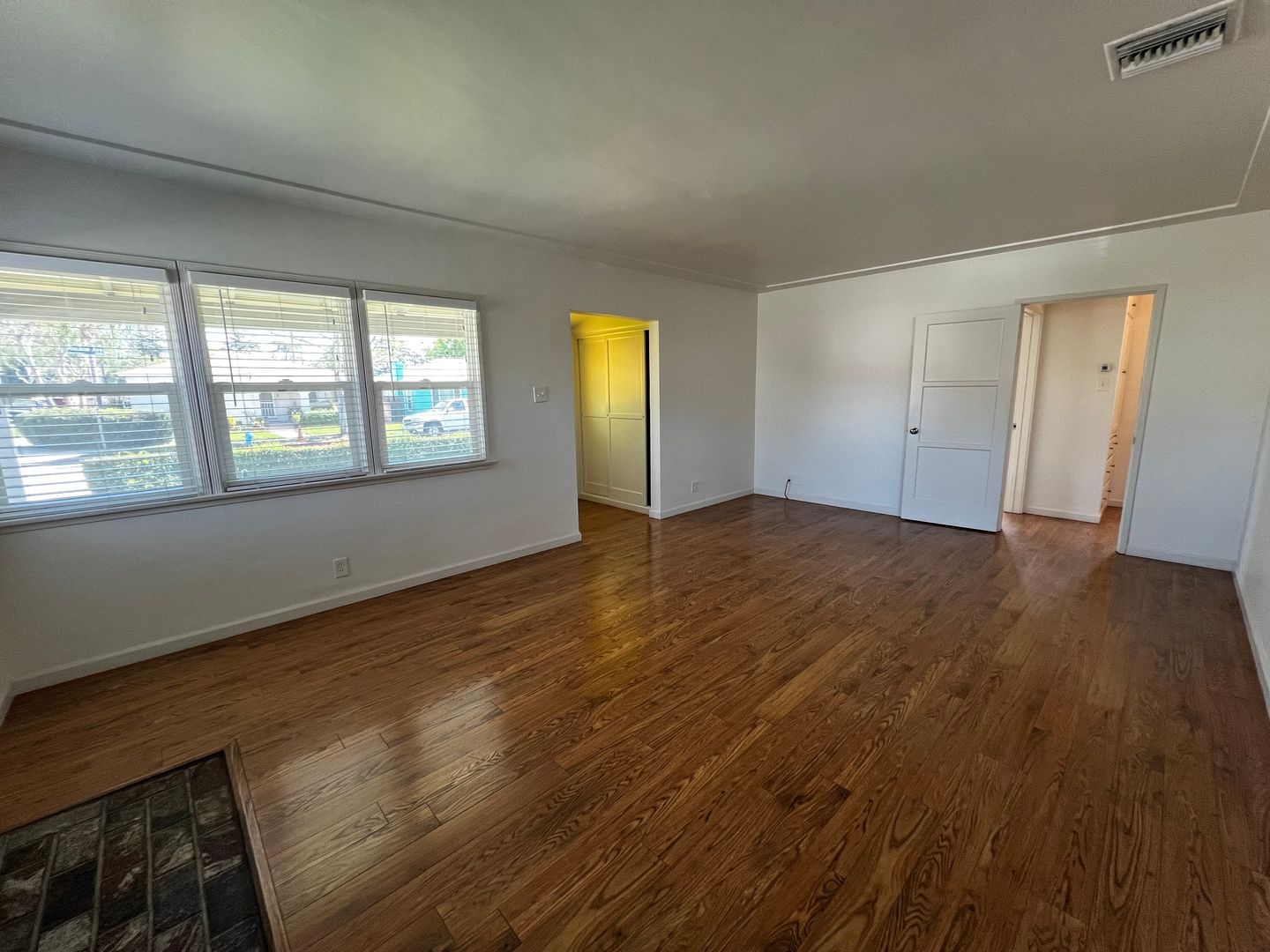 Clean and expansive 3 bedroom 1 bath house for rent in Whittier. Double pane windows, central air conditioner, and laminate wood flooring throughout the home. Beautiful brick fireplace with a white mantle above it, perfect for holiday decorations. There is an enclosed patio with screens and a detached two car garage. Also, there is a covered gravel parking space adjacent to the garage. The grassy backyard is very long with a lemon tree and kumquat tree. Close but not too close to the 605 freeway. Don't miss your chance for a great home.