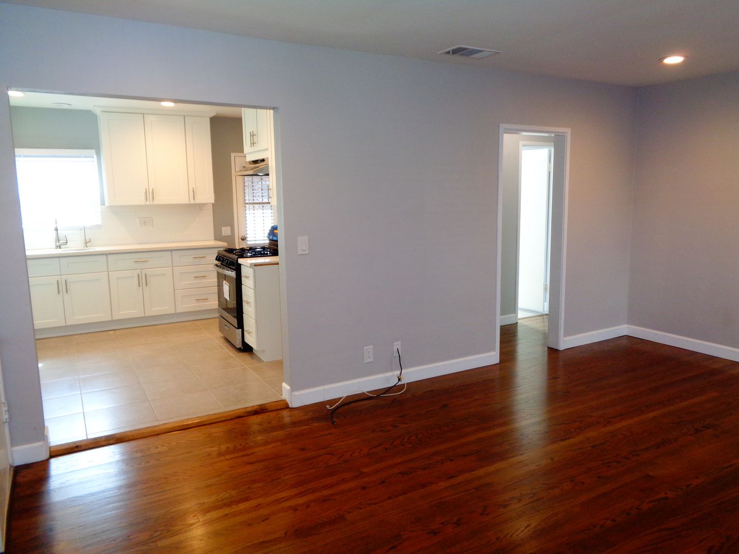 This a remodeled 2 bedroom 1 bath ground level apartment in a great location. The front unit of this duplex is spacious and modern. Beautiful walnut stained hardwood floors through out, no carpet! Central AC and a rare hard water softener system. Ring camera provided. 1 car garage and 1 carport space. There is a 3rd parking space if you park in front of your carport space.